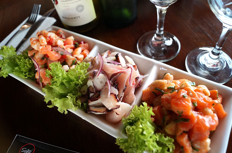 Esperamos que en tus visitas a SAIKO MAKKI disfrutes también de cervezas nacionales y extranjeras, cócteles variados incluido nuestra idolatrada receta peruana de Pisco Sour, y vinos de diversas viñas del país para lograr una experiencia completa."